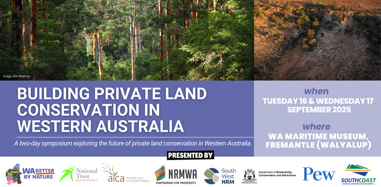 Committee members Andy, Beth and Peter attended a wonderful two day symposium in mid September called Building Private Land Conservation in Western Australia – very relevant to our aims and ongoing project. Over two days many high profile speakers presented work being done around Australia by both the big players like TNC, AWC and Bush Heritage and smaller groups and individuals. A key take away was how backward our conservation coventant systems are in WA compared to NSW and Vic, something the WA Minister says is being worked on.