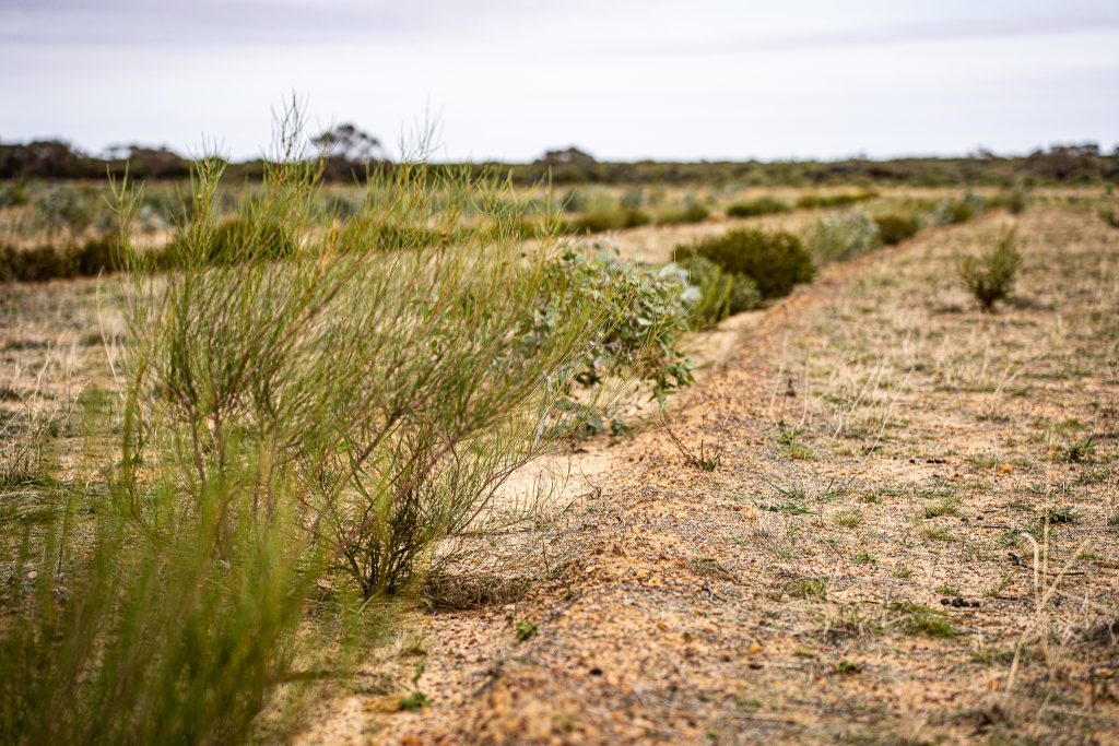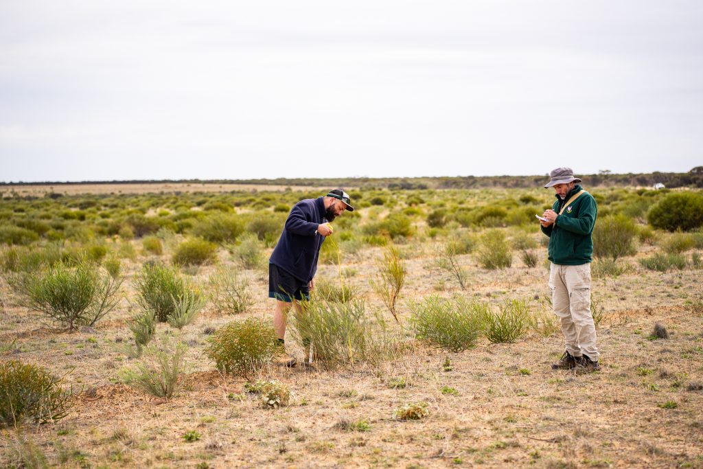 Lewi Marr, Annie Leitch, Joe Porter and Ruby Albury recently visited the block with committee zoologist Andrew McCreery. The crew deployed motion cameras on active Malleefowl mounds, measured seedlings planted in 2023, and carried out drone mapping (see separate post).