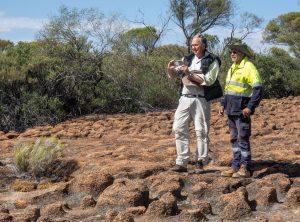 A DBCA botanical officer visited to inspect the new populations of the rare and endangered Acacia lobulata we have discovered on this block (and which have increased the world's known number of specimens from 75 to over 300!).