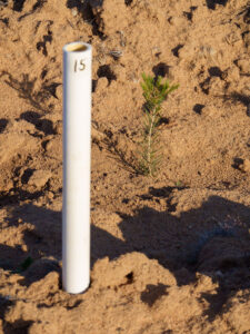 We did the first careful assessment of the newly planted seedings and considering the poor winter and spring rains, they are looking great: maybe 5% have died and a few have been nibbled by the locals.